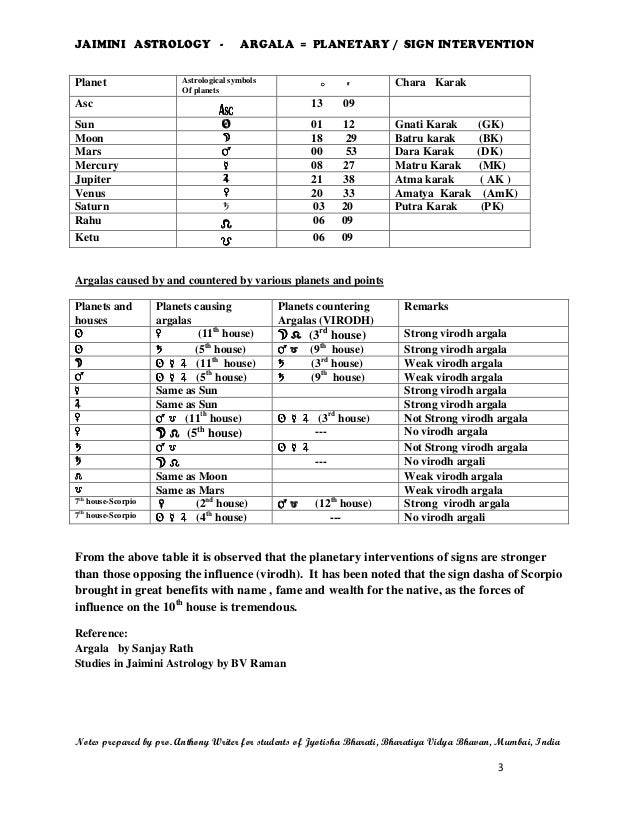 Jaimini astrology argala in predictive astrology - SlideShare 1. JAIMINI ASTROLOGY - ARGALA = PLANETARY / SIGN INTERVENTION JAIMINI ASTROLOGY - ARGALA = PLANETARY OR SIGN INTERVENTION Notes prepared by pro. Anthony Writer for students of Jyotisha Bharati, Bharatiya Vidya Bhavan, Mumbai, India 1 Sanjay Rath states: Argala means planetary/sign intervention.