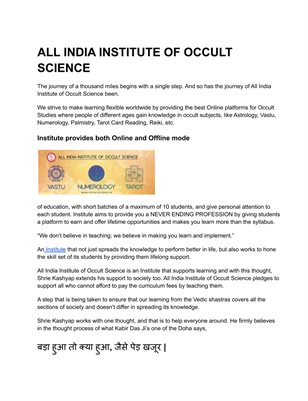 All India Institute Of Occult Science — Astrology Course - All India ... Astrology investigates the impact that distant cosmic objects, usually stars and planets, have on human lives. Astrology is an ancient Indian science that clarifies planetary movements and positions for time and their impact on people and different substances on earth.. BENEFITS YOU WILL GET JOINING AIIOS ALL INDIA INSTITUTE OF OCCULT SCIENCE