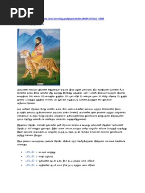 Pulipani astrology in tamil. சனி திசை பலன்கள் - புலிப்பாணி ஜோதிடம் 300 பாண்டு போன்ற நோய் உபாதை உண்டாகும். வெகுதனமும் பெரும்பொருளும் சேதமாகும். சத்துருக்களால் மூவகையில் விரயம் உண்டாகும். நன்மையே தரும் மனைவிக்கு கெர்ப்ப நஷ்டம் ஏற்படும் என்று போகரது பேரருளால் புலிப்பாணி கூறினேன். சனி மகாதிசை,சுக்கிர புத்திப் பலன்கள் பாடல் 245 Rasi Palan Today Tamil 3rd December 2022 Daily Horoscope Predictions 12 ... Published at : 03 Dec 2022 06:05 AM (IST) Tags: daily rasipalan tamil horoscope rasi palan today 2022 mesha rasi palan 2022 rasi palan 2022 meena rasi palan nalla neram today panchangam today tamil daily horoscope prediction safuhkx.char-grills.shop › tamil-online-jothidamதேடல் தொடர்பான தகவல்கள்: உங்கள் ஜாதகம் - Your Horoscope ... Language/மொழிBest Books for CA Inter, LLB & BBA books are free and available for everyone to download as a pdf. Learn about the most important Law Jan 21, 2018 . pulipani jothidam books in tamil pdf learn astrology in tamil pdf free download kudumba jothidam tamil pdf free download jathaka Jathaka alangaram tamil pdf.. Apr 28, 2009 . . Palani Aatheenam - Siddhar Pulippani Tradition many of us unaware of pulipani siddhar in the realms of tamil siddha and at the same time there will be few people left among who knows the world famous siddha who attained the peak in his creativity and the power of his meditation and 'dapas' who, through his the power of his meditation and dapas had created the status of 'navapashana' of sri …