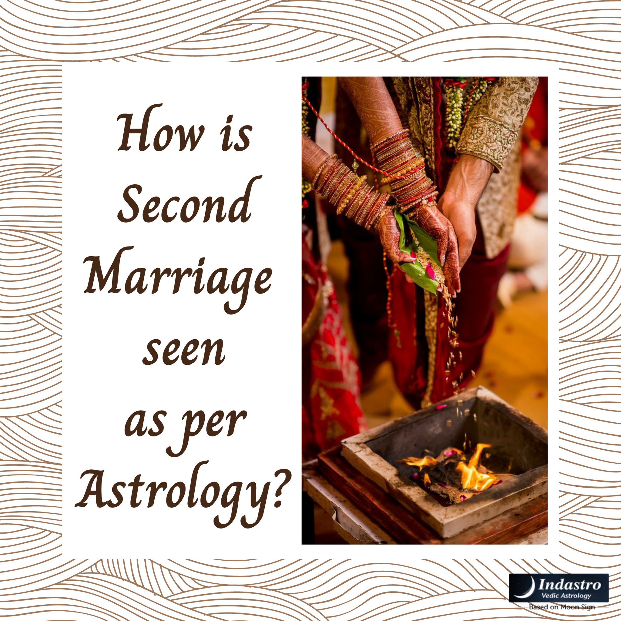 Astrological remedies for second marriage - Vedic astrology Moment of the second marriage in Vedic astrology. Moment of the second marriage In Vedic astrology, the second marriage is more frequent these days. Sooner it will become more common in the future. This amount of divorces and separations are increasing in our societies at an alarming rate. India is a diversified culture with a fusion of ...